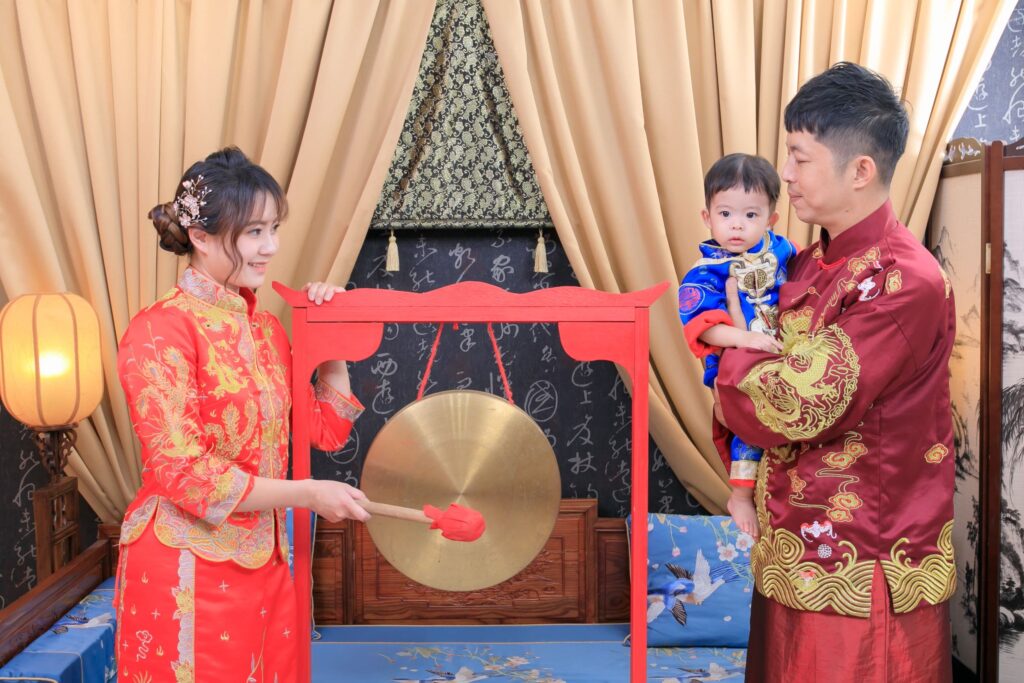 敲響幸福平安鑼,誠心祈求孩子平安成長。